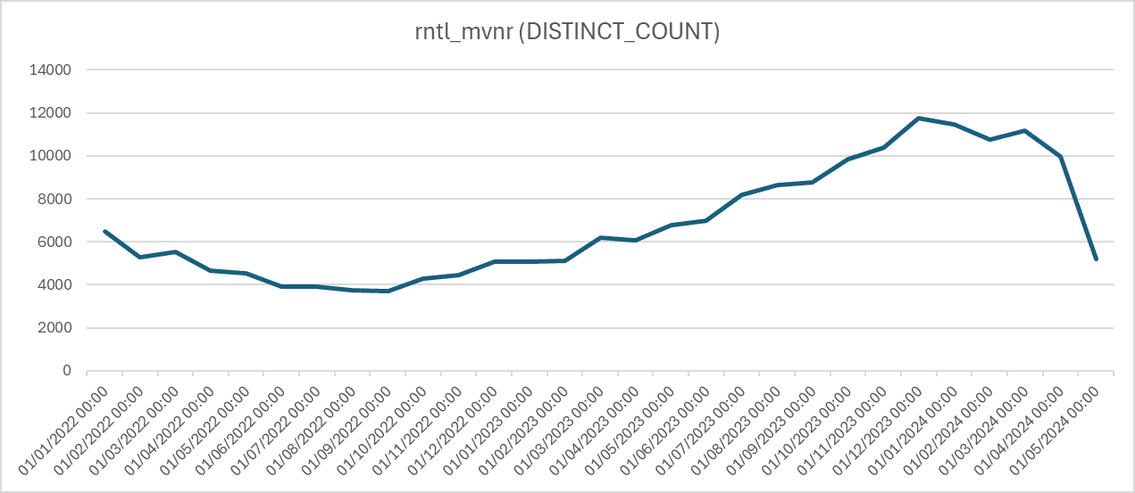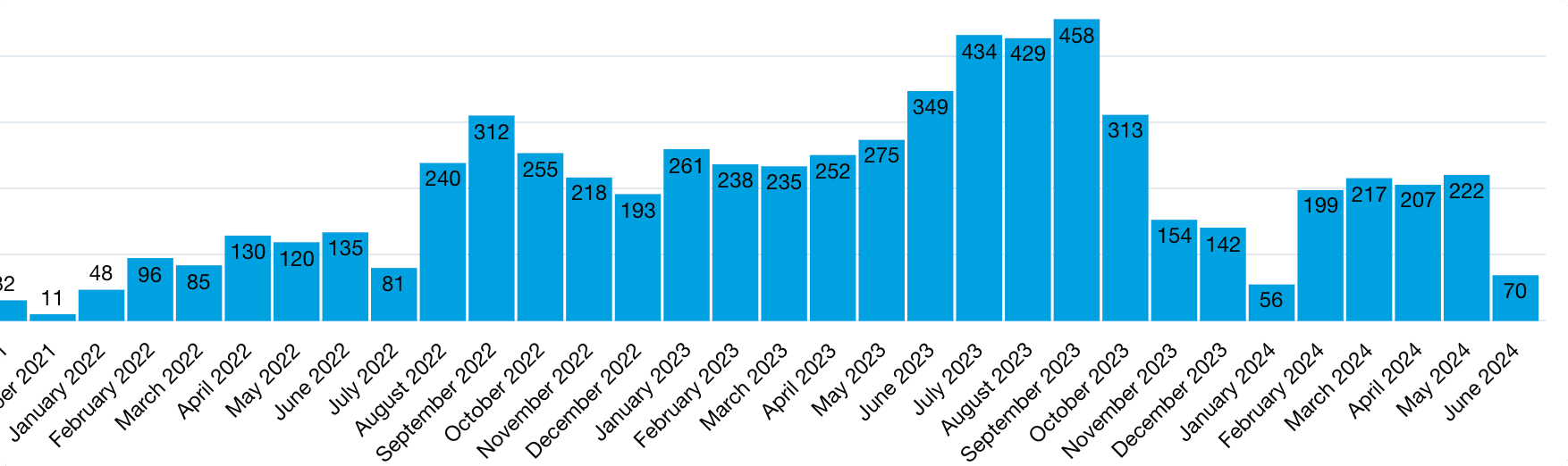 Monthly increase in onboarding subscribers
