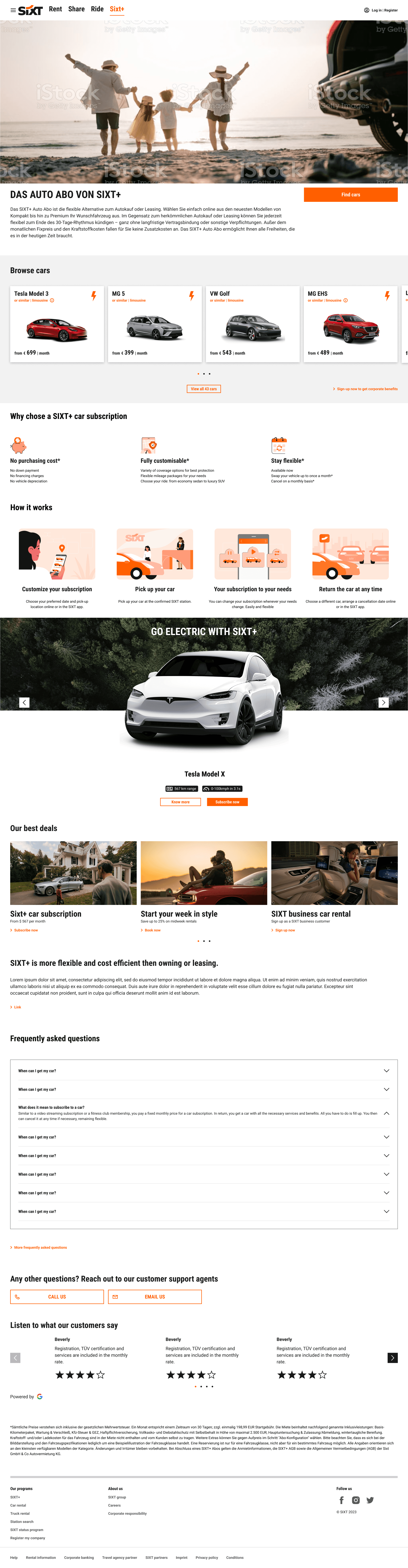 A dedicated vehicle promotion spotlight is created on the SIXT+ home page.
